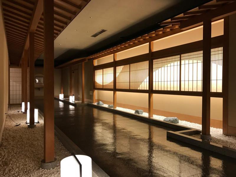男湯女湯に分かれるのれんをくぐり、女子大浴場へと向かう廊下にある5m幅の障子。今回障子紙を張り替え、組子(竪子)を足し、デザイン障子に生まれ変わりました。手がけてくださったのは、山形市のはとやさん。長さの違う組子を足すだけて、様々なデザインがつくれるんですね。純和風だった廊下が和モダンな雰囲気になりました。ご入浴の際は、温泉へつづく廊下もお楽しみください。美味求真の宿 天童ホテルhttp://www.tendohotel.co.jp/