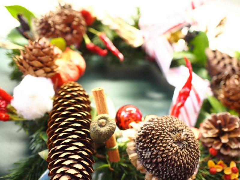 天然素材をたくさん使ったリース作りと蜜蝋のキャンドル作りを行います。