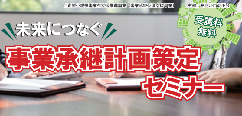 本セミナーは、表面的なものや相続税の節税等の知識だけではなく、どうすれば良いのかを本気で考えるセミナーです。メイン講師はもちろん、ゲスト講師陣全員が事業を引き継がせる側、引き継ぐ側の経験をしています。リアルな体験談とともに事業承継の重要性についてお話いたします。 日時:1月20日(月)、1月27日(月)、2月3日(月) 午後3時〜午後6時場所:寒河江市技術交流プラザ受講料:無料 詳しくは下記クリックによりチラシをご覧ください。 <<<チラシダウンロードはこちら>>>