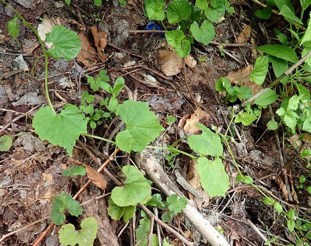 園管理車道入り口周辺は月山〃のため3月には除雪しますそのためミヤマニガウリの成長約30cmで5株見受けました。