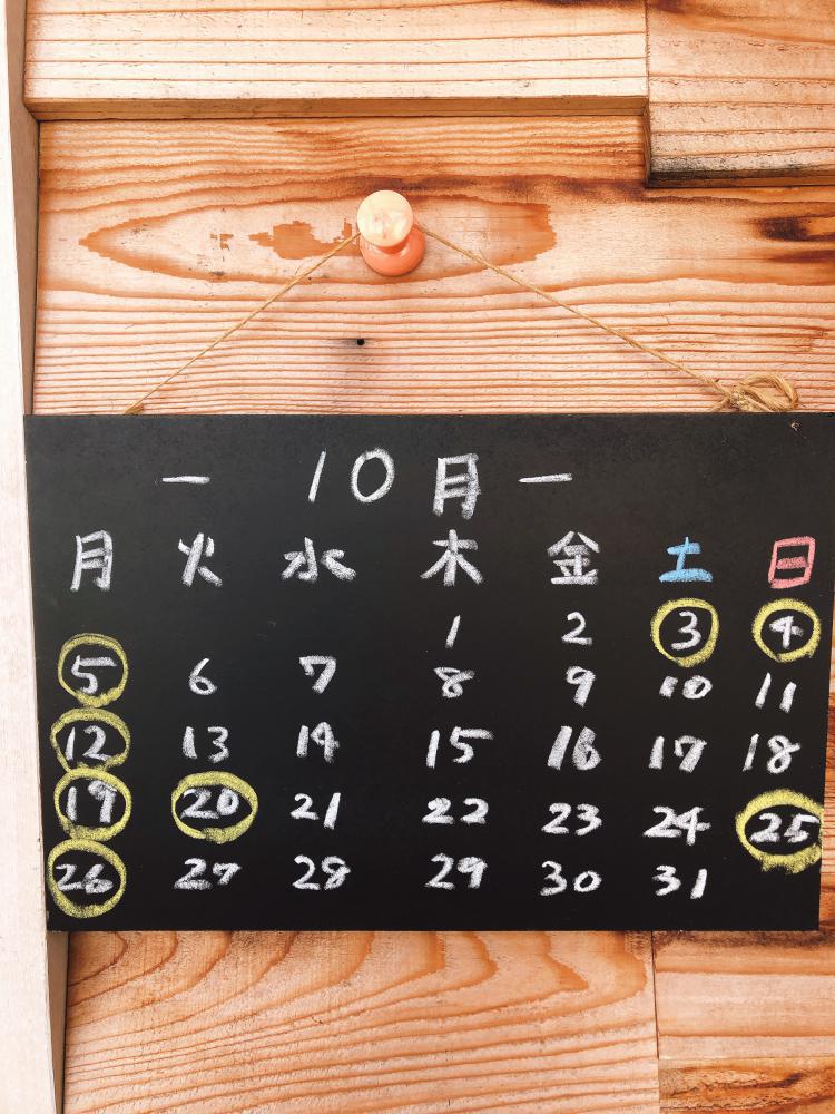 10月のカレンダー更新いたします♪都合により、臨時休業もいただいております。今月もどうぞ、よろしくお願いします??