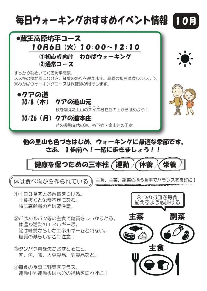 蔵王高原坊平の紅葉が見頃です!これから里山や市街地も色付いてきます。上山市の「毎日ウォーキング」では、紅葉の高原や里山を毎朝楽しく歩いていますよ♪綺麗な山の空気を吸ってリフレッシュしませんか。予約不要です。お気軽にご参加ください。 毎日ウォーキングカレンダー ダウンロードはこちら(上山市役所HP) ★毎日ウォーキング参加料★上山市民/参加料無料市外の方/1回おためし1,000円、回数券(4回分)3,000円、1ヶ月パス3,000円※回数券は分け合って使用可。ご家族ご友人やグループでのご参加もオススメです ★参加方法★事前の申し込みは不要です。当日、時間まで集合場所へお越しいただき、参加料をお支払いください。集まった方全員で歩きます。 ★ガイド★蔵王テラポイト協会 ★服装・持ち物★歩きやすい靴、動きやすい服、帽子マスク、うちわ、タオル、飲み物、ティッシュ等 ★新型コロナウイルス感染症予防のため★・自宅で体温を測定し、平熱か確認しましょう・マスクをつけて参加しましょう・天気や気温、参加者の体調によっては、コースは終了時間の変更がありますのでご了承ください ★お問合せ★上山市健康推進課 TEL.023-672-1111 内線197