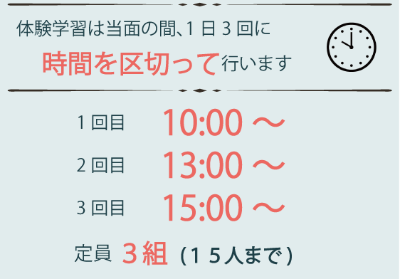 新型コロナウイルス感染拡大予防のため、体験学習の受付時間や体験メニューなどを変更して実施しています。