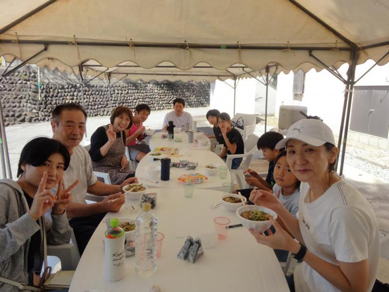 秋の風物詩、TASSHOで手ぶらで芋煮会の食事風景です。お客様からは、美味しいの言葉を沢山いただいています。