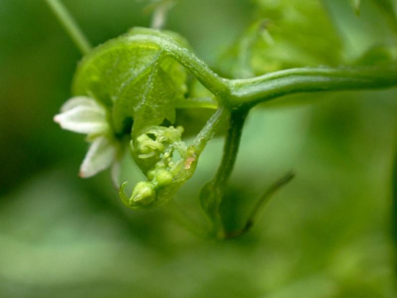 ミヤマニガウリは9=10月と寒い季節に開花するので、朝、夕の寒さを凌ぐため葉自身抱擁します。(2020年10月温室を形成をするという論文化なる私もその内の一人)写真は温室形成初の段階で矮性の枝(dwarf shoot)になり両性花、雄性花をつけます。そのようすがこの資料です。繊細で不思議さと感動をおぼえます。