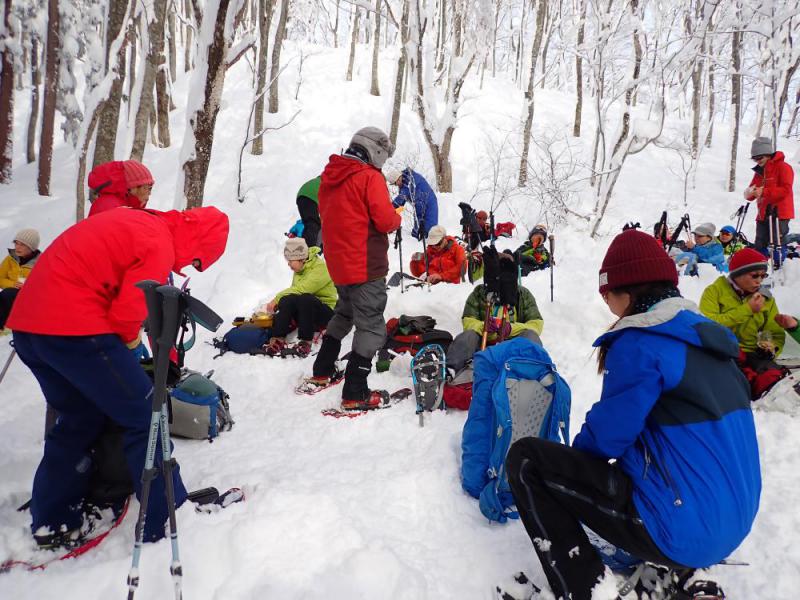 ブナの森はしらゆきみめの館にも似て白亜の殿堂に近い。雪の落下等も無く広場で昼食会をする。一汗かき腹も減り楽しいひとときを過ごしました。