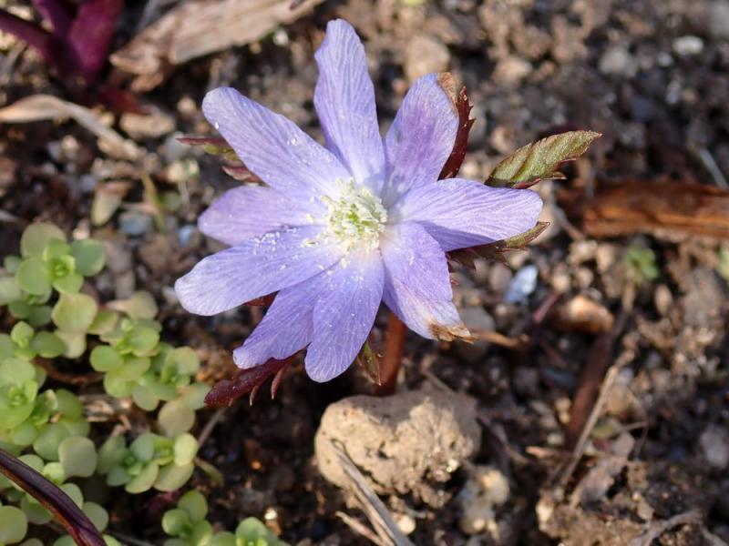 3/5、日中の気温が9℃〜12℃と高い。わが家の庭のキクザキイチゲが開く。