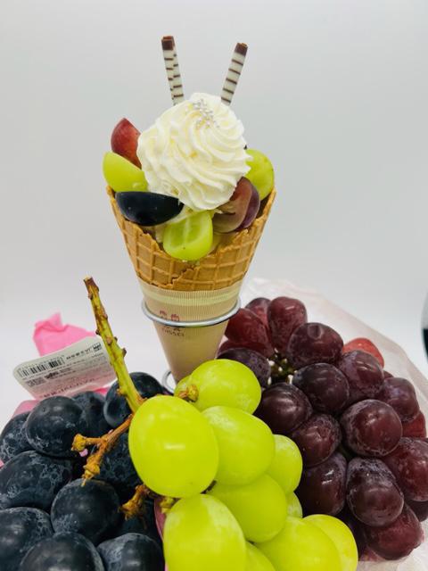 【10月8日・9日】2日間限定で《ぶどう食べ比べパフェSpecial》が登場です!新種のぶどう「富士の輝」通称"ブラックシャインマスカット"が入荷しました!そこで・・・皮ごと食べられる大粒ぶどう3種の競演です♪●富士の輝"ブラックシャインマスカット"●シャインマスカット●ナガノパープルみなさまのお越しをお待ちしています。 ・一番上(奥に)が新種のぶどう「富士の輝き」    パリッとした皮はシャインマスカットに似ています。とにかく甘い!!・手前左が「ナガノパープル」   ジューシーで濃厚な甘さのぶどうです。・手前右側が「シャインマスカット」   お口の中に広がるマスカットの香り、シャインならではです♪