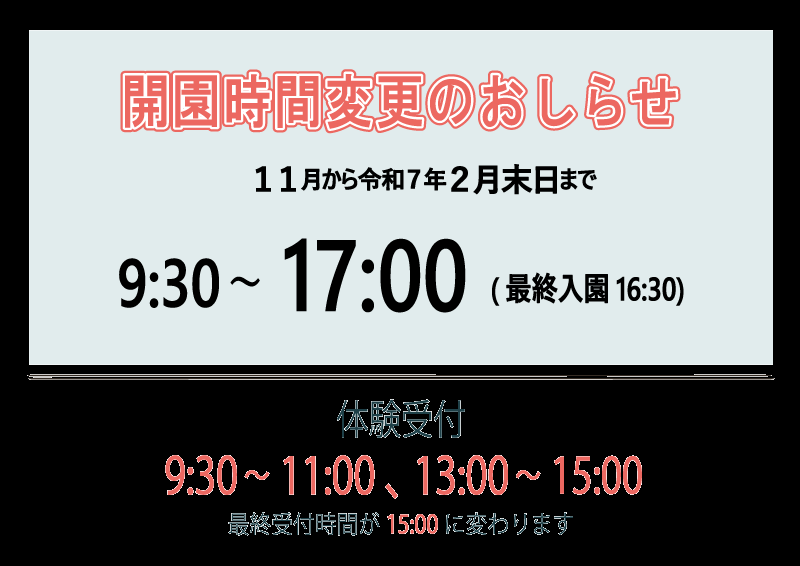●11月〜開園時間が変わります