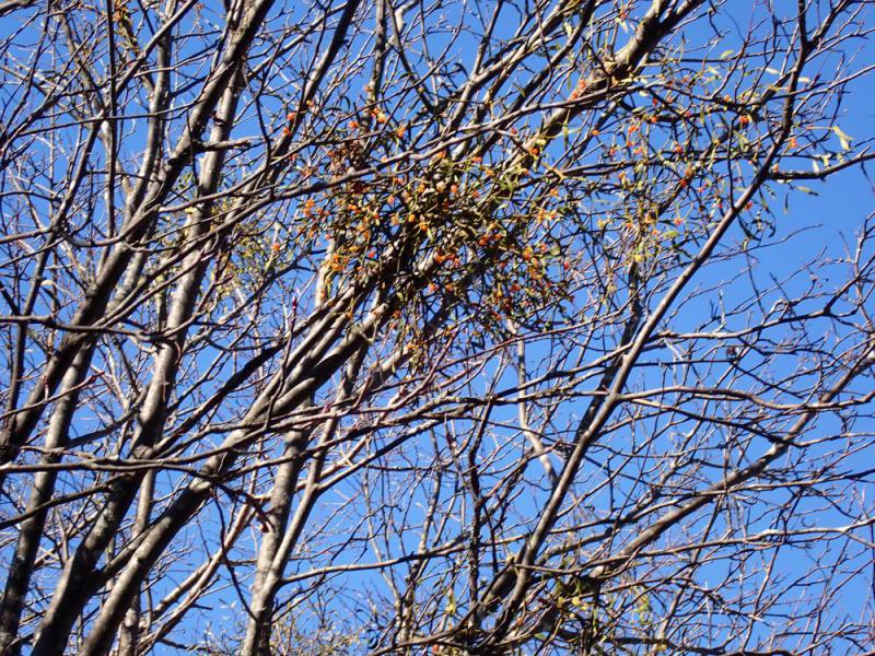アカミノヤドリギとヤドリギ(黄色)が見事です。春をまつヤドリギ。繁殖は鳥達に食べてもらう事にある。それが群れをなして飛来するレンジャクの大群だ。3月にはやって来る。