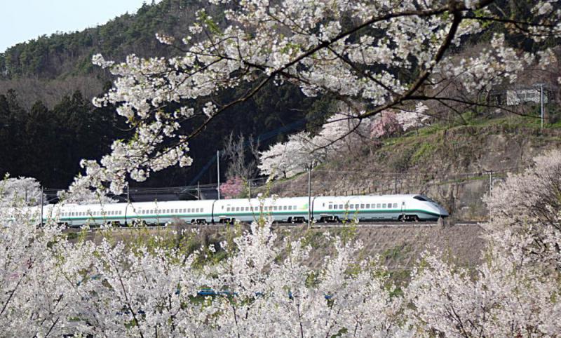 2023年私の選んだベストショット第3位は烏帽子山公園の桜と山形新幹線の懐かしいシルバーに緑色のラインに彩られた列車です 特別企画で一日何本かしか走らない列車で通過時刻も何時になるのかわからないので列車が来るのをジーっと待って撮った一枚です大きくなった東京の孫は小さい頃この列車が大好きだといっていた思い出の新幹線の列車です