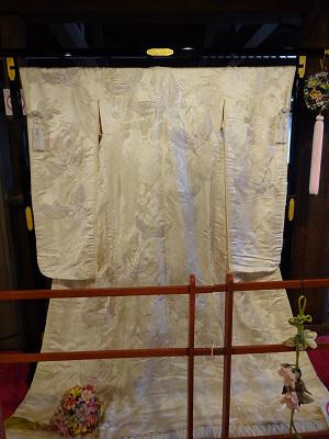 展示室で目を奪われるのが白無垢の婚礼衣装です。