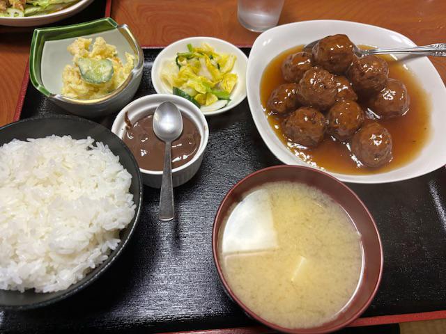小龍姫(0238-43-5063)の肉団子定食。と唐揚げ定食。唐揚げ定食の唐揚げは油淋鶏、なんだよね〜。