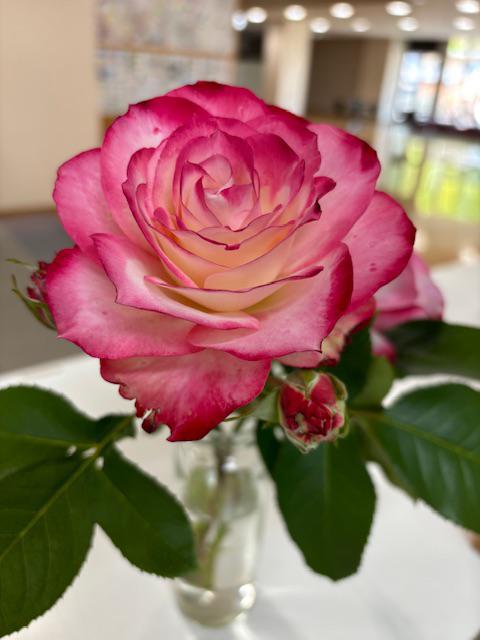 薔薇を頂戴しました。「モナコ」という種類だそうです。(調べたら正式名は「プリンセスドゥモナコ」。モナコ王国の故グレイス王妃に捧げられた薔薇。)宮内の双松バラ公園の薔薇はどんな咲き具合かな。