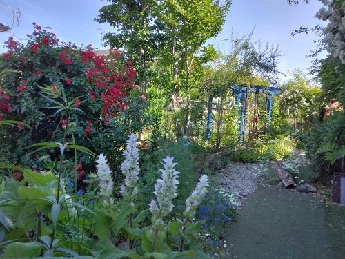 今朝はちょっと曇り空でしたが、日中は暑くなり長井の最高気温は28.6℃!もう来週の予報には30℃越えがありました。さすがに花達もカラカラ・・・しかし、我庭は木陰も多く爽やかな風も入って来て午前中は涼しく過ごせました。 ↓先日UPしたばかりの”ゾンマーアーベント”ですがもう満開状態です。我庭で一番みごたえある一際鮮やかな赤いバラです! ”クラリーセイジ”も急に伸び始めました〜 ↓6/3撮影〜なんか変な格好のツボミでしたが。 ”西洋ノコギリソウ”(アキレア)色合いが素敵です〜! 玄関前の寄せ植え。。。2021年の母の日のプレゼントなんですが、カシワバアジサイが小さな鉢でまだ頑張っています!脇に並んでいるドールもかわいいです〜 昨日の庭も、書き込み中なんですが、時間が遅いので今日はこれでおしまいに。明日へ持ち越しです・・・変な順番ですみません