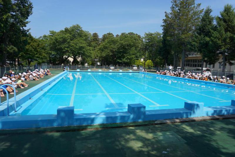 本日、プール開きを行いました。朝の時間を使って、これから始まる水泳学習への安全な実施と泳力向上を全員で願いました。プールの四隅にお神酒と塩をまいて、全員での安全祈願。四隅へのお清めには、4・5・6年生の学級委員のみなさんにお手伝いをしてもらいました。代表児童によるめあて発表、とても立派でした。全校生一人ひとりがしっかりとめあてをもって、これからの水泳学習に臨むことを期待します。そして、校長からの話は3つ。きれいなプール環境への感謝、安全の徹底、泳力向上に向けての努力。良いシーズンになりますように!