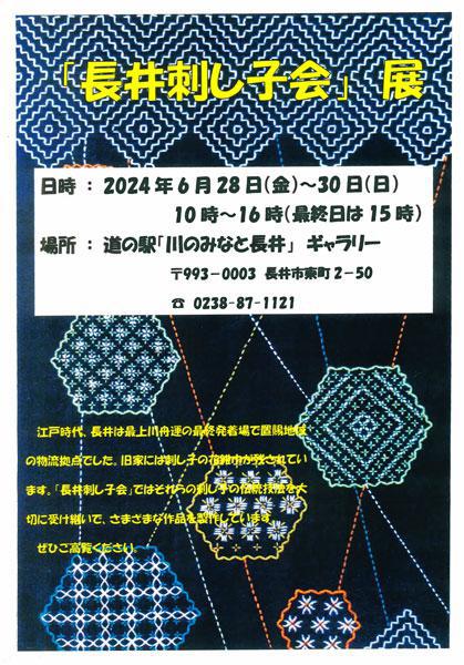 ※この展示会は終了しました。ご来場ありがとうございました。 中央コミセンの学習ひろば自主教室「長井さしこ教室」で、指導・活動をしている 長井刺し子会のみなさんによる展示会が、6月28日(金)から6月30日(日)までの3日間、道の駅川のみなと長井で開催されます。長井市 近郊の旧家から花雑巾 を集めては、その刺し方を解き明かし、技術を伝え、深めてきたみなさんの作品を、ぜひ間近でご覧ください。とき:2024年6月28日(金)〜30日(日)10時〜16時(最終日は15時)ところ:道の駅川のみなと長井ギャラリー(長井市東町2-50) Instagramはこちら