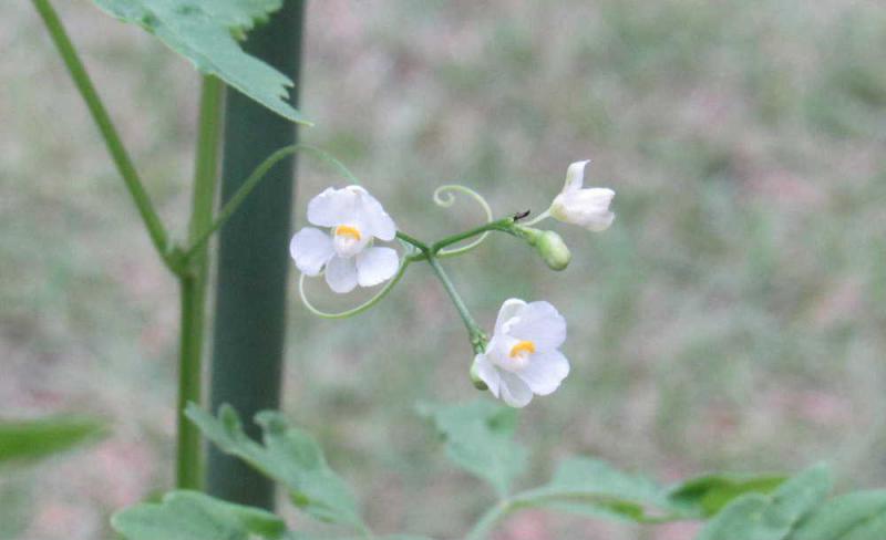 ●5ミリほどの小さな花がさきました 実が風船のように膨らんで実らせる「フウセンカズラ」の白い花 秋になると小さなぶどうの実のような鮮やかな紫色の実をならせる「コムラサキシキブ」の薄紫色の花と可愛らしい花が梅雨時のうっとおしい気候を和らげています
