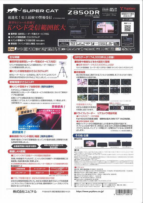 11日から販売されるユピテルの Z850R です ■■新商品:レーダー探知機指定店専用モデル ■■ 指定店専用モデル レーダー探知機&ドライブコーダー「Z850DR」を新発売致します。 ■業界初!最新型レーダー可搬式オービス対応! Kバンド受信範囲の拡大により最新型のレーダー可搬式オービスの警報を受信しました。 ■Kバンド警報タイプ自動切替 都道府県ごとのレーダー可搬式オービスの配備状況に合わせて警報タイプを自動切替。 配備エリアは警戒を最大化! 未配備エリアは、Kバンド識別を行い、誤警報を軽減しつつ警戒します。 ■新技術「Kバンド識別」機能 取締り電波とこれまで誤警報源となっていた電波を識別。 誤警報の大幅な軽減を実現しました。 ■ドライブレコーダー(フロントカメラユニット)はフォーマットフリーを採用し、microSDは32GBに容量アップ オプションリアカメラ(OP-CM207)はアナログ伝送ケーブルに変更し、9mの接続ケーブルとなります。・オプションリアカメラ OP-CM207 (ケーブル長 9m)・・・15,000円(税別)詳細はお問い合わせください フロントライン 0238-84-0506