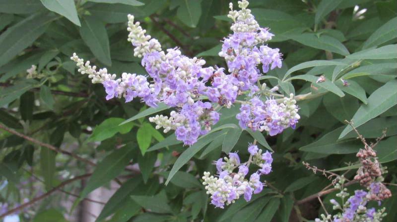 ●花が少なくなる夏ですが爽やかなすみれ色の花を咲かせている花木と出会いました「セイヨウニンジンボク」でしょうか 1昨年の7月にもアップしたことを思い出しましたが あまり栽培されていないとのことですがニンジンボクと変わった名前です 開花期も長く花や葉にも香があるそうですがニオイを嗅いできませんでしたがのでどのような香りなんでしょうか