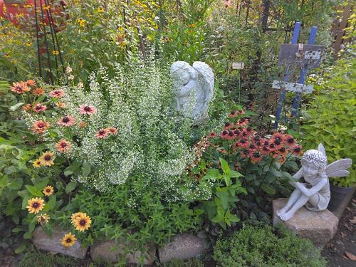 昨日は梅雨明けの発表!今日の長井は、朝は涼しかったですが予報通り、最高気温も34.0℃、、、暑かった! 今日は、7時前の涼しい時の朝撮りです〜 (トップ写真)は・・・すっかり”カラミンサ”に占領された?お気に入りのエリア秋まで長く咲いてくれるので増やしてみたら増えすぎた?今日のNHKのあさイチの『みんなグリーンだよ』は猛暑を乗り切る!暑さに強い草花その中に”カラミンサ”の花材があって色々と紹介されていました。  ↓わが庭では唯一の”宿根ひまわり”この花が咲いてくれると何故か元気な気持ちに・・・   ↓先日UPした秋咲きの”アネモネ”もイエローガーデンで引き立って見えます!  裏庭にある”ミニガーデン”?森の中の別世界のように涼しげに〜♪ほとんど手をかけないで自然な状態で・・・