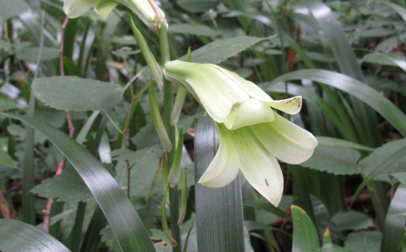 ●ユリの花に似た白い花を山際でみつけました あまり日当たりのよくない湿地に咲いていました ユリに似ているが葉が違っている「ウバユリ」の花ででしょうか 花が満開になる頃に葉が枯れてくることが多いので歯(葉)のない「姥」にたとえて「ウバユリ」と名付けられたとか 今日13日から15日は旧暦のお盆でご先祖様を供養する日です ご先祖様があって今があります 生きていることに感謝しなければ
