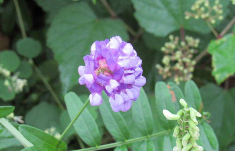 ●台風が上陸しそうで雨模様です 道路沿いに青紫色の「クサフジ」や「ツユクサ」が雨に打たれ一層鮮やかさを増して咲いていました これから鮮やかな色の花が次々と咲きはじめます じっくり見ると「ツユクサ」の花も可愛いですね 白やピンクだった早春の花は黄色やオレンジ色の花になり秋の深まりとともに濃い紅やオレンジ色 紫色などの花がさいてきます