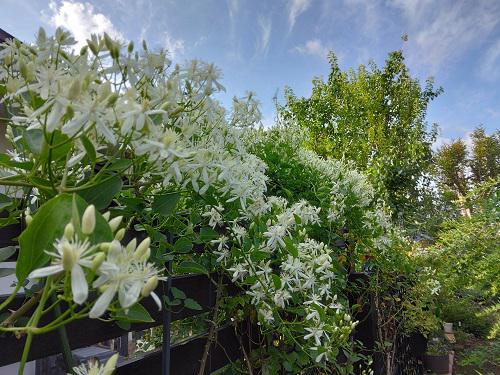 朝晩は風が冷たかったり、無風状態で暑かったりで、毎晩、どうして寝ようか迷ってしまいます。外壁も黒に塗り替えたので2階は暑いです、、、前回も書きましたが、気温差に弱いばーばですが、じーじはへっちゃらです!じーじは足が弱った老犬サスケと一階で寝ていて少しは涼しそう・・・ さて、庭は。。。「ホワイトガーデン」撮ってみましたがチョット寂しそう・・・ 一番の大物は”仙人草”、こぼれ種からの増殖がすごい!毎年、いろんなところに増え続けています。長い期間、楽しめるのですが毒があるのでほどほどに・・・ ↓つるバラ”アルバメイディランド”も咲き始めました。 ↓どこまで伸びるのか? “ユーパトリウム グリーンフェザー”まだ花芽がつかない! いつ?? ↓長井でも有名な”はぎ”つぼみもたくさんついていますが、やっと咲き始めました・・・ 何回も紹介していますが我が庭の一番の引き立て役”カラミンサ” 右側は”白色フジバカマ” ”青色フジバカマ”も我が庭では存在感のある秋の花ですが"白色”は中々増えない貴重な花です! ↓秋の終わりまで咲き続け、勝手に増える手のかからない“エリゲロン” ↓これは?→ニラの花です。