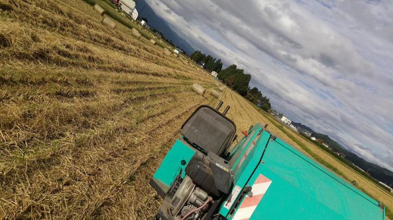 稲刈りが終わり稲わらを集めています。牛の餌になります。この作業も今日で完了の予定です