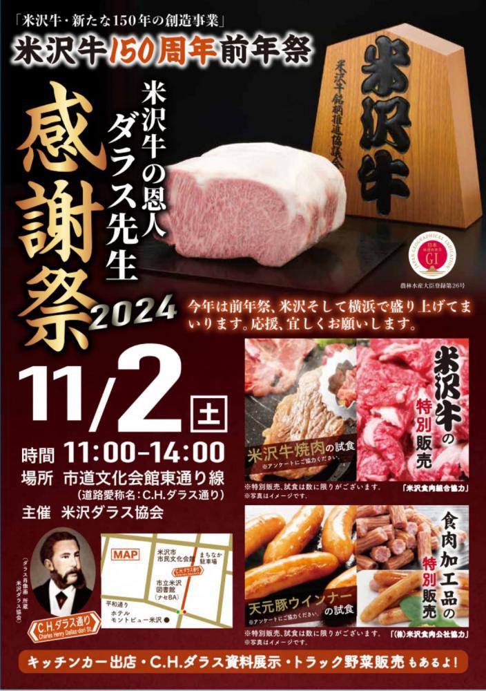 ●米沢牛150周年前年祭「米沢牛の恩人ダラス先生感謝祭2024」11/2(土)開催!