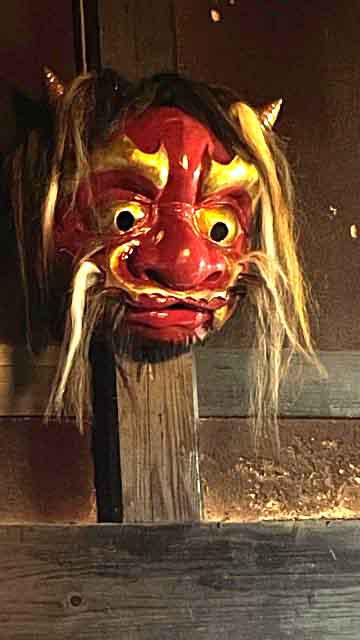 数年前に彫り、思い出しては塗り、また思い出して先日仕上げた邪鬼の面である。