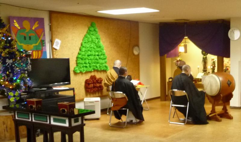 12月4日(水)、 花の里にて成道会法要が執り行われました。当施設の所長、生活相談員、主事、介護員にて読経をさせて頂きました。読経後に利用者様に対して、生活相談員より「成道会とは、お釈迦様がお悟りを開いた事を記念して行われる法要である事」「お釈迦様は臘月(旧暦12月)8日にお悟りを開かれた事」「悟りを開くとは、自分を認識し、自分という存在に気付く事」「一日一日を大切に生きて頂きたい事」「寒くなってきており感染症等が流行する時期でもある為、体に気を付けて生活して頂きたい事」等を話して頂きました。利用者様は生活相談員からの話を真剣に聞いておられました。利用者様にも焼香をして頂き、一人一人丁寧に手を合わせておられました。