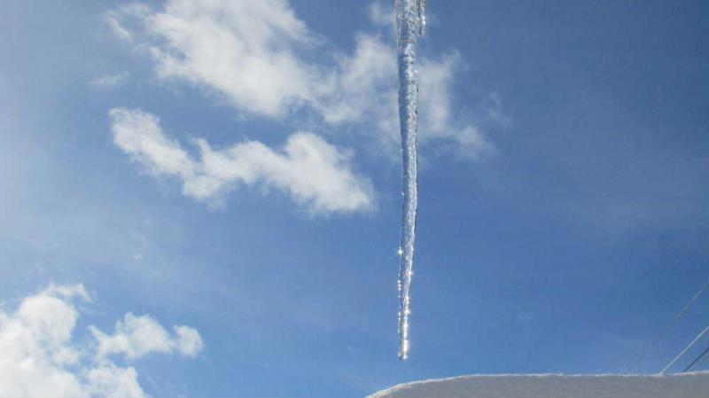 ●昨日の朝 僅かな晴れ間の青空に光るツララを見つけました 透明なツララを通してキラキラと輝く光は宝石のように美しく昨日の朝までの猛烈な降雪がウソのようです 今朝は穏やかな朝を迎えました 大雪が山を越したのでしょうか