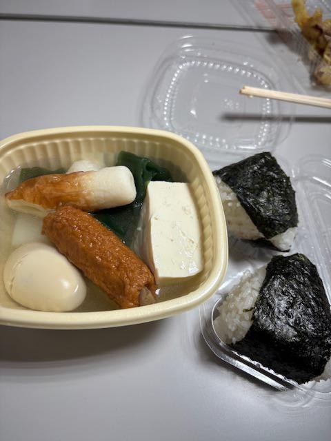 山映(0238-43-2316)のおにぎりとおでん。以前はおでんセットがあったのですが、今はないそうです。おでんはおでんで。おにぎりは好きな具材のおにぎりで注文。