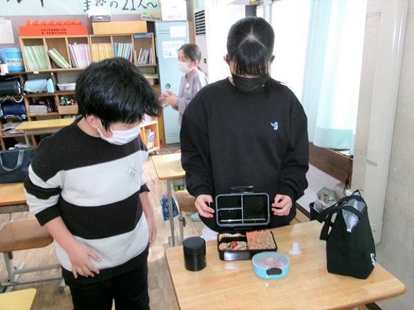 2月12日(水)、今日は母親委員会主催の「お弁当の日」(6年生対象)です。これまでの調理実習などで培った力を生かし、メニューの考案から調理、盛り付けに至るまで、一人一人試行錯誤しながら取り組んだようです。心を込めて作り上げた力作の数々をご紹介します!どのお弁当にも、それぞれの工夫やこだわりが詰まっており、まさに「自分だけの特別なお弁当」となりました。  もちろん、今日は担任も手作りのお弁当です!  普段は家族に作ってもらうことが多いお弁当ですが、今回は自分で作ることで、お家の方への感謝の気持ちや調理することの楽しさを実感したことでしょう。 これを機に、また挑戦してみてくださいね。