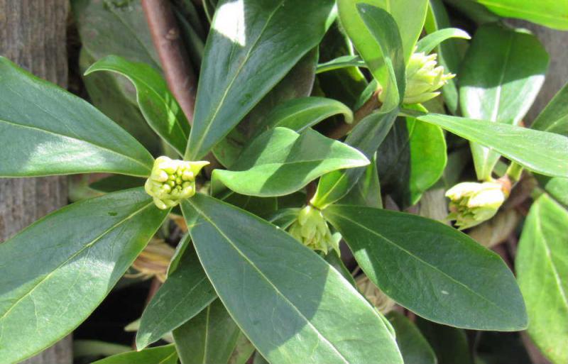 ●春の香木の代表「チンチョウゲ」が関東で開花したとテレビで報道されていました 前の年から花芽をつけている我が家のチンチョウゲの開花はもう少し先になりそうです 常緑の葉も陽の光に輝いています 開花していい香りを放ってくれるまでもう少し時間がかかりそうです
