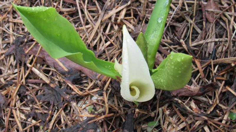 ●春を探しに 裏の川べりの「ミズバショウ」 昨日までの暖かさとはうって変わって寒い朝を迎えました 4,5日寒い日が続きそうですが裏の川べりの隣地の「ミズバショウ」が開花し始めました また今年もミズバショウの季節になりました 吉野の水林に群生している場所がありますがきっとまだ雪におおわれているに違いありません 雪解けが進んだらいってみたいです