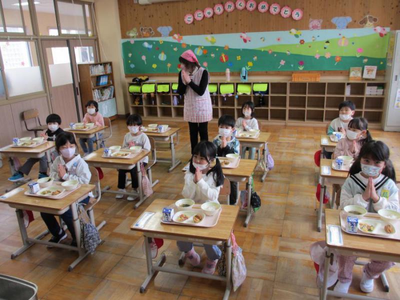 1日遅れになりましたが、1年生の給食が始まりました。初めての給食ですので、お邪魔をしないよう様子をうかがいに行こうとしていましたが、来客のために出遅れて、1年教室に行った時には、もう食べ終わる頃に…。1年生の食器をのぞいてみると、なんと、ほとんどの子どもが給食をぺろりと食べ終わっていました。「おいしかったですか?」と聞いてみると、「おかわりしたよ」、「3回も!」等々、何ともなんともたくましい声が返ってきました。準備もスムーズにできたとのことで、何よりであります。「おいしい給食」というテレビドラマをご存知でしょうか。主人公は、給食大好きな中学校教師。あそこまでの「給食愛」は求められませんが、「ぺろりん」が続くことを願います。さて、今日のメニューはというと、「レインボー米粉カレー、麦入りご飯」!楽しみです。