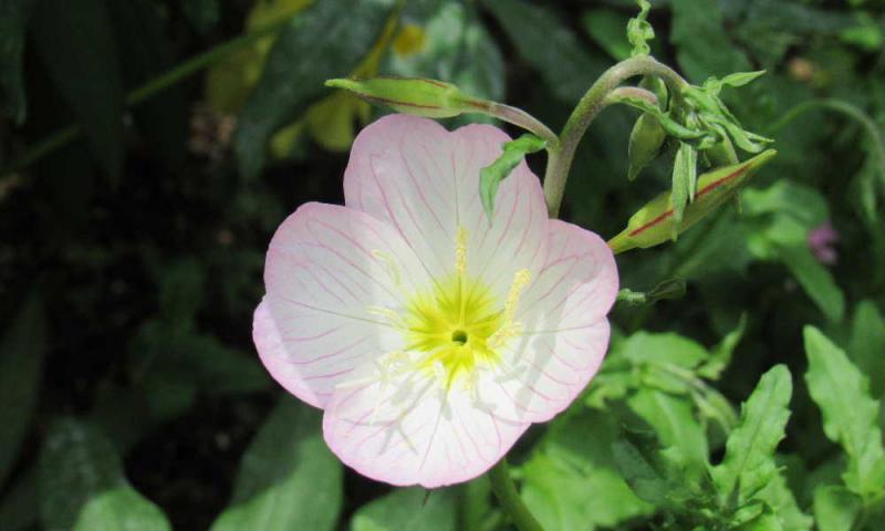 ●庭の「ヒルザキツキミソウ」がようやく一輪咲きました ツキミソウは夕方から夜に咲くのが多いと言われていますが「ヒルザキツキミソウ」は朝から咲いています 今頃から長期間にわたって花を咲かせ楽しませてくれます 葉は比較的小さくあまり背丈は伸びず枝は直立しその先に花をつけます 花びらは白く縁がピンクのとてもきれいな花です 丈夫な花で根を張りどんどん増えていく花で放置しておくとあっという間に花壇を占有してしまうほどです 一面に咲くと庭が華やかに見えてきます