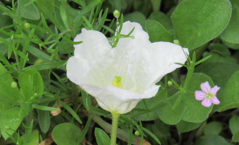 ●濃い緑の小さな葉をびっしりと敷き詰めたジュータンのようなところに可愛い白い花が咲きました 数年前知人からもらったものがようやくここまで成長してくれました 盃のような形の「ギンパイソウ」別名「サカズキバナ」です あまり湿り気のない砂利や砂の上で育つ花で緑のグランドカバーに咲いているのがとても可愛いです 今朝は雨が降っており真っ白な盃にお酒を注いだような写真がとれました 見えますか酒の注がれた盃に