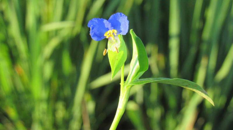 ●今日の最高気温が38度になるとの予報が出ており 今日も暑くなりそうですが梅雨の時期に青紫色の「ムラサキツユクサ」を朝の散歩で見つけました 昼にはしぼんでしまいますが咲いている花をよく見ると黄色の雄しべが6本あると言われています 可愛い花ですが不思議な花です