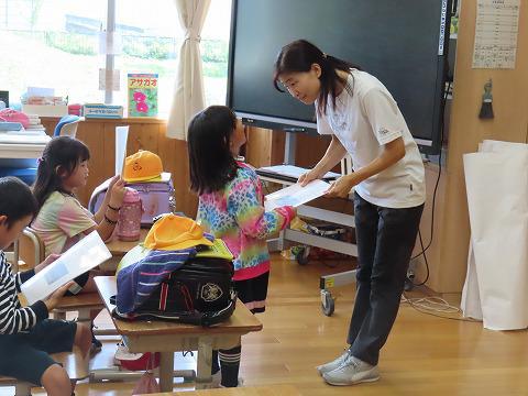 今日は上期の通知表配付日です。1年生は初めての通知表を担任の先生からもらいました。2年生の先生は教員になって初めて、子どもたちに通知表を渡しました。上期と下期のインターバルはありませんが、明日から新たな目標をもって頑張ってほしいです。明日は中距離走大会があります。練習のための子どもたちの走路がすべって危なかったので、小白川の渡部製材様から木のチップをたくさんいただき、それを技術員さんとSSSの方に敷き詰めていただきました。これで、滑らずに走られそうです。