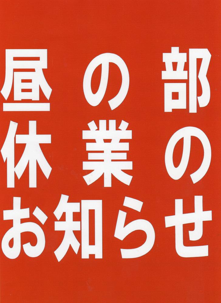 ●昼の部休業のお知らせ 今週16日17日18日19日