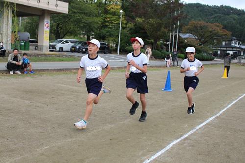 10月16日(木)、持久走大会を行いました。当日は9時から雨が降る可能性、10時からは小雨の予報。もし、時間通りに行ったとしたら全学年の大会を終えることはできない天気でした。前日まで、16日当日に向けて、体育の時間だけでなく、朝も休み時間も練習していた子供たちです。15日には「明日、本番、頑張る!」「あんまり得意じゃないけど、頑張ればいいんだよね。校長先生!」などなど、子供たちの声をたくさん聞いていました。どうしてもこの気持ちや頑張りを途切れさせることなく大会をしてあげたいと思い、予定時間の変更で大会を行う判断をしました。 朝、つながるLINEで急な時間変更をお知らせしましたが、保護者の皆様にはご対応いただきありがとうございました。また、時間が合わず、お子さんの走りを見ることができなかった保護者の皆様、大変申し訳ありませんでした。子供たち全員、自分の目標に向かい、また、苦しさに打ち勝ち、最高の走りを見せてくれました。どうか、子供たちとの会話から、その頑張りを聞いていただき、たくさん褒めていただければと思います。急遽、全学年一緒に開会式をしたので、開会のことばが3人。みんな自分の目標をしっかり話してくれました。最初は2年生の走りです。次は1年生!誰一人途中で投げ出さずに走り切りました。3・4年女子です。3・4年男子です。学年が上がるにつれて、走りに力強さが感じられます。これは5・6年女子!独走です。最後は5・6年男子。周りの友達を気にしながら自分のペースを考えて走る、そんな駆け引きの様子もうかがえました。走ることが得意な子も、苦手な子も、自分の思いに向き合って走り切った姿が素晴らしいと、東根っ子の姿を見て改めて実感しました。