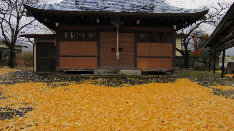 ●昨日天候に誘われて散歩に出かけました 初雪が降り木々の葉を落としています あんなに鮮やかな黄色のイチョウの葉がすっかり落ちて地元の神社の庭はイチョウの絨毯を敷いたように黄色に輝いています 西からの季節風に吹き飛ばされるのももうすぐでしょうか
