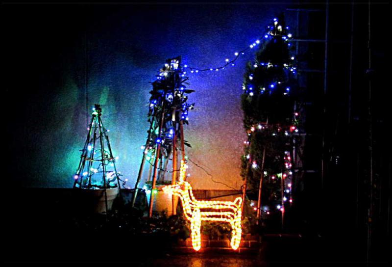 ●今日はクリスマスイブ 初孫もすっかり大きくなりクリスマスのプレゼントをねだる年齢でなくなりました 今から20年以上も前のクリスマスを迎えようという12月初めて生まれた孫に見せたいと窓辺に飾ったイルミネーションを今年も飾りました 今では誰も見てくれる人もおりませんが毎年この季節になると玄関を彩ってくれるささやかな我が家のイルミネーションです たった400球ほどのイルミネーションですが薄暗い路地を照らしてくれています