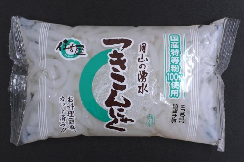 国産原料と月山の名水でつくった歯ごたえのある弾力が特徴のつきこんにゃくです。カット済みの為、包丁いらずのこんにゃくです。〈商品名〉 つきこんにゃく〈内容量〉 200g